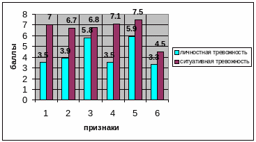 Затем анализируя данные методики ИТТ, среднее значение уровня личностной тревожности по выборке составляет- 3,5 балла, средние значения уровня ситуативной тревоги- 7 баллов.