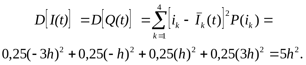 Процессы I(t) и Q(t) отличаются от процесса C(t) длительностями тактовых интервалов (TS = 2TBдля QPSK и TS = 4TBдля QАSK), а для QАSK ещё и начальными значениями BI(0) =BQ(0) = D[I(t)] = D[Q(t)] и GI(0) = GQ(0) = D[I(t)]/TS= D[Q(t)]/TS