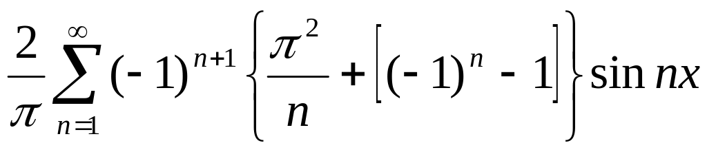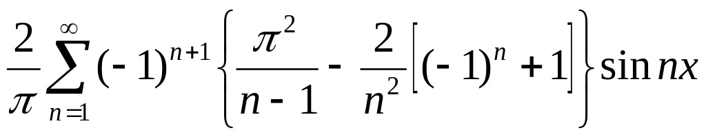 Разложение функции y=x2 в интервале (0, ) в ряд Фурье синусов имеет вид: