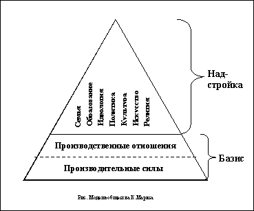 Роль материального производства по Марксу: является доминирующей в развитии общества, определяет экономический базис и надстройку