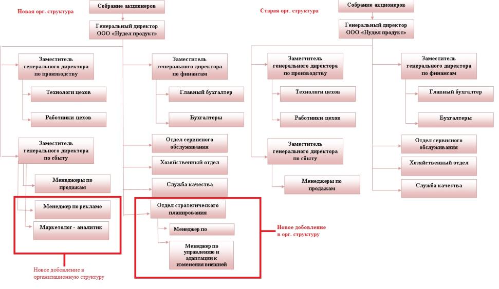 Рис. 3.1. Изменения в организационной структуре ООО «Нудел Продукт»