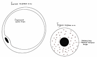 Жировые клетки – адипоциты/липоциты, белые и бурые. Белые- крупные, 120–140 мкм. Бурые - 30–40 мкм. Ядро в белых адипоцитах на периферии, уплощено, гетерохронно. В бурых ядра округлые, в центре, более светлые. В белых большая часть цитоплазмы занята 1 большой каплей жира (триглицериды/нейтральные жиры). В бурых в цитоплазме - множество мелких капелек. Органоиды в белых развиты плохо, представлены единичными митохондриями и свободными рибосомами около ядра. В бурых- органоидов больше, хорошо развиты митохондрии (именно митохондриальный фермент цитохром придаёт специфическую буроватую окраску клеткам). Белые закладываются в эмбриональном периоде и сохраняются на большем протяжении жизни человека, к делению клетки почти не способны. Гипертрофия- процесс увеличение объёма жировых клеток. Бурые - появляются в эмбриональном периоде, сохраняются на протяжении раннего детства, после количество значительно убывает, встречается в межлопаточном пространстве, по ходу остистых отростков позвонков, в местах бифуркации крупных сосудов и нервов, в жировых капсулах внутренних органов.