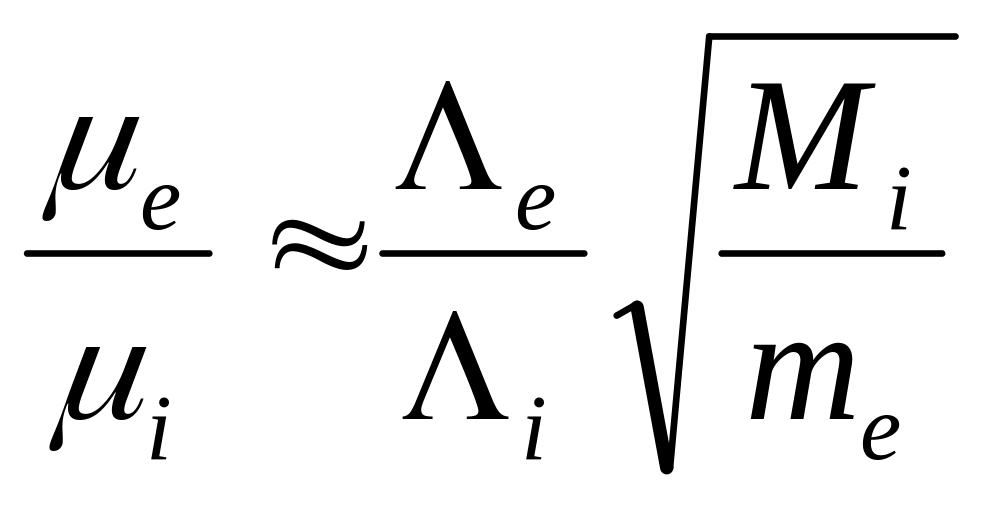 Дрейфовая составляющая скорости появляется и у ионов газа, прием их подвижность μi связана с подвижностью электронов (в грубом приближении) соотношением