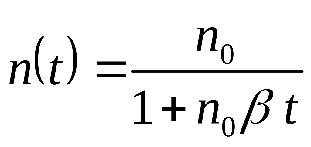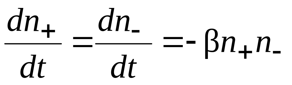 Коэффициент β определяется скоростью частиц. Чем медленнее движутся частицы, тем больше времени они находятся вблизи друг друга и тем выше вероятность рекомбинации. Коэффициент β может быть определен по скорости уменьшения концентрации заряженных частиц после выключения разряда. Если в момент выключения разряда n+ = n- = n0, то интегрирование выражения (11.23) дает