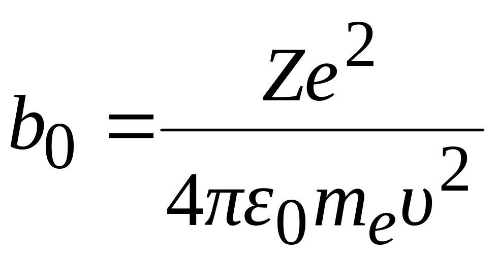 Минимальное расстояние определяется так называемым радиусом ближнего взаимодействия b0 – расстоянием, при котором взаимная потенциальная энергия сталкивающихся частиц равна по абсолютной величине удвоенной кинетической энергии их относительного движения. Для электрона и положительного иона с зарядом Ze