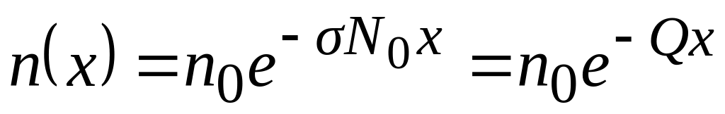 Интегрирование выражения (11.1) дает закон уменьшения концентрации частиц потока за счет актов взаимодействия в газовой среде. Если σ и N0 не зависят от x, то