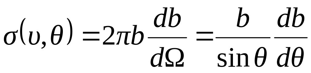 Выделим из потока электронов, движущихся относительно атома газа, ту его часть, для которой прицельные параметры начальных траекторий лежат в пределах от b до b+ db. Выделенная часть потока пройдет через кольцевую область с внутренним радиусом b и шириной db, центр которой расположен в месте нахождения атома. Площадь кольца 2πbdb. Электроны, отклонившись в результате взаимодействия с атомом на угол θ, проходят через телесный угол dΩ = 2πsinθdθ с углом раствора θ.