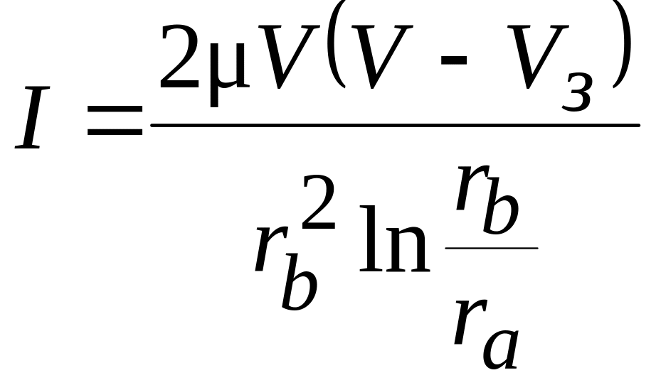где μ – подвижность носителей во внешней области; V – напряжение на разрядном промежутке; V3 – напряжение зажигания коронного разряда; ra и rb – радиусы внутреннего и внешнего электродов.