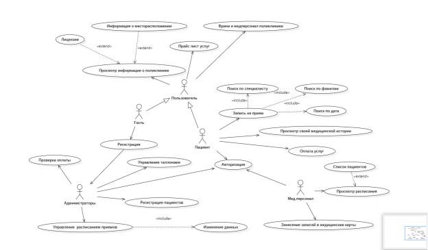 писи на прием к врачам, управление расписанием врачей, учетом свободных талонов и взаимодействия с пациентами и врачами. Пользователем данной ИС являются администратор, который занимается составлением расписанием ра-