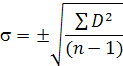 где D – отклонение каждой величины от средней;