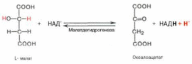 Наконец, в ходе восьмой реакции цикла трикарбоновых кислот под влиянием митохондриальной НАД-зависимоймалатдегидрогеназы происходит окисление L-малата в оксалоацетат: