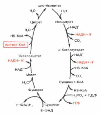 Первая реакция катализируется ферментом цит-рат-синтазой, при этом ацетильная группа ацетил-КоА конденсируется с оксалоацетатом, в результате чего образуется лимонная кислота:
