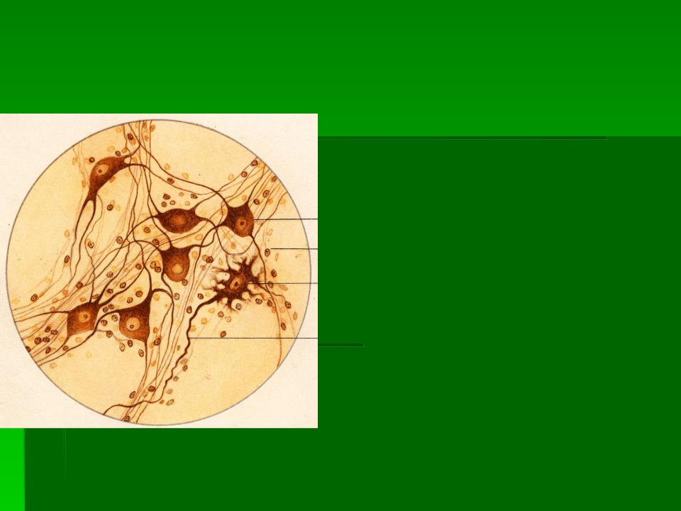 -вокруг тел нейронов находятся глиальные клетки сателлиты с круглыми ядрами, кнаружи от сателлитов располагается слой соединительнотканных клеток с уплощёнными ядрами, образуя защитные слои вокруг нейронов. -отростки нейронов окружены оболочкой из леммоцитов; -имеются небольшие группы