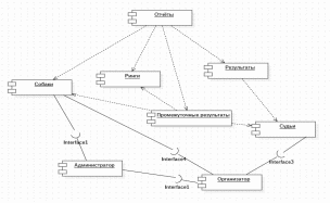 Разработанная диаграмма компонентов представлена на рисунке 21. С помощью нее будет определен состав программных компонентов, в роли которых может выступать исходный, бинарный и исполняемый код, а также установлены зависимости между ними.