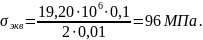 Гидроцилиндры амортизаторов изготавливают, как правило, из конструкционных и легированных сталей с хорошей свариваемостью. В данной конструкции принимают Сталь 30ХГСА по ГОСТ 4543-2016. Для нее предел текучести составляет 490∙106 Па. Толщина стенок гидроцилиндра δ принимается равной 0,01 м. Тогда эквивалентное напряжение σэкв, вычисленное по формуле 48: