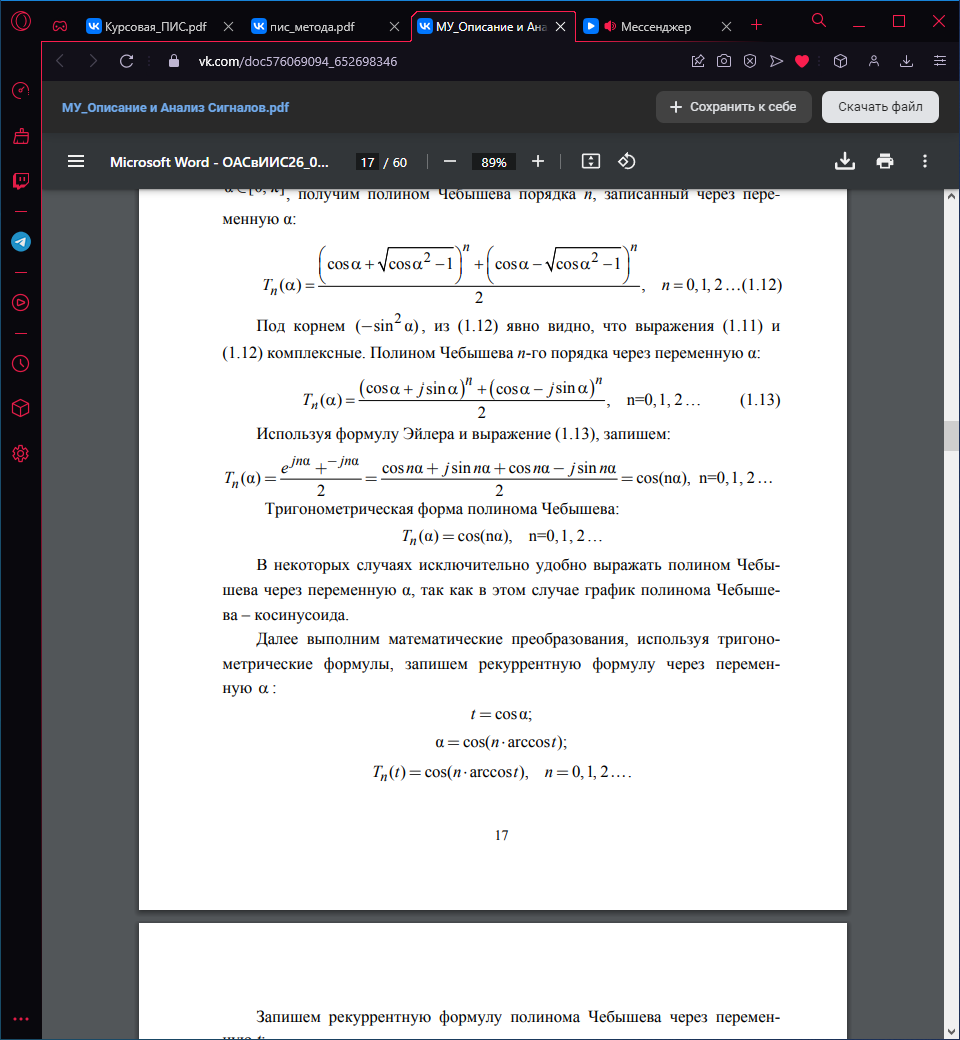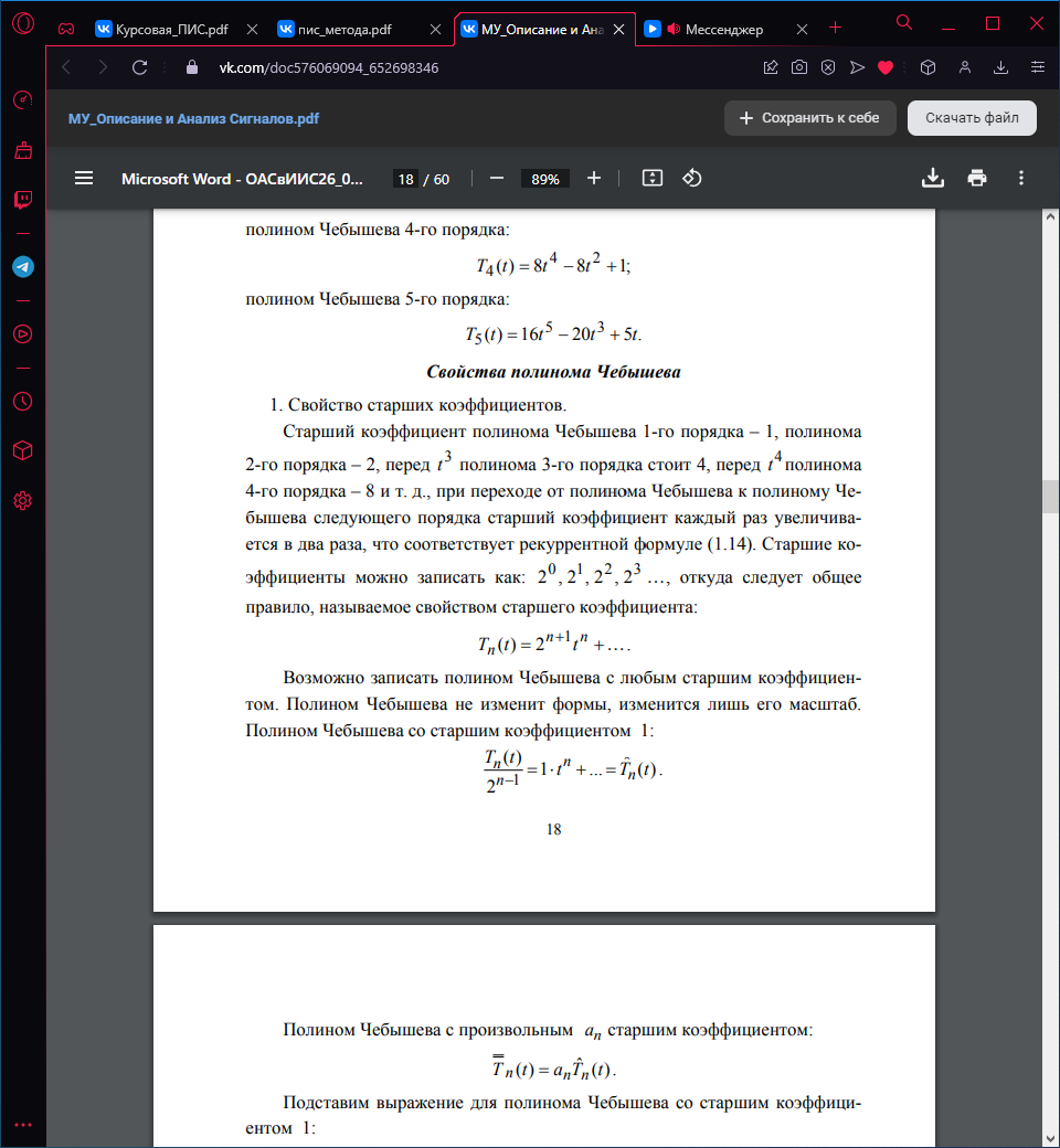 - •7. Описание сигналов по Чебышеву. Погрешность описания.