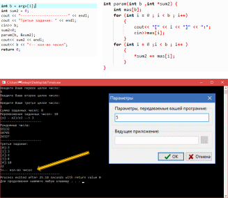 Поступаю аналогичным образом – сначала принимаю значение по количеству переменных из параметров, затем задаю переменные, после чего прописываю функцию по условию и вызываю её, получая на выходе требуемый результат: