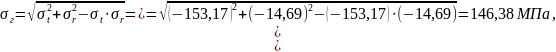 Приведенные напряжения на внутренней поверхности гильзы: