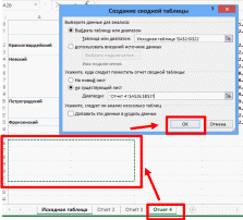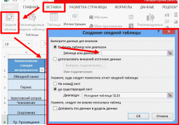 Для создания запроса будем использовать “Сводную таблицу”. Данная функция находится в категории “Вставить”. После всплывания окна “Создание сводной таблицы”, необходимо курсором выбрать таблицу и указать место, куда следует поместить отчет сводной таблицы. На рис. 14-16 подробно показано как создать сводную таблицу.