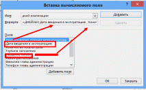 После откроется окно, в которое необходимо ввести наименование поля, и формулу вычисления (в нашем случае данная формула будет выглядеть таким образом:
