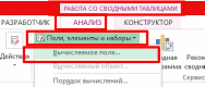 Для того чтобы вывести срок реализации, необходимо создать вычисляемое поле. Данную категорию можно найти “Работа со сводными таблицами – Анализ – Поля, элементы и наборы – Вычисляемое поле” (смотри рис.22).