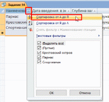 После того как ты создали исходную таблицу для запроса, отфильтруем названия станций в алфавитном порядке, то, как это сделать показано на рис.29.