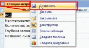 После того как создана таблица в режиме конструктора её необходимо сохранить. Для этого правой кнопкой мыши нажимаем на вкладку «Таблица» и выбираем сохранить. Сохранение таблица показано на рис. 59.