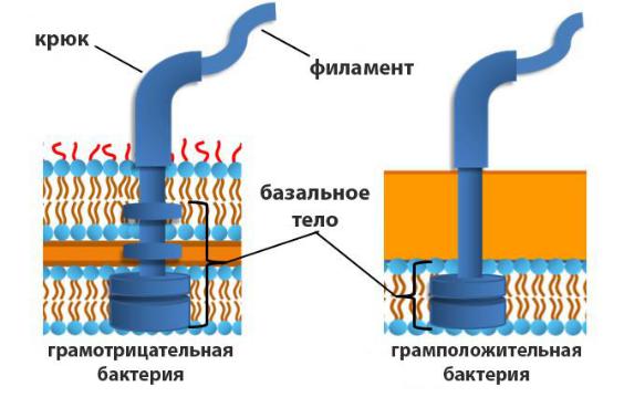 Рисунок 17. Жгутики грамотрицательных и грамположительных бактерий