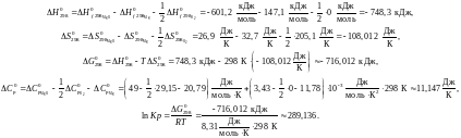 - •2.1 Расчет параметров реакции при температуре 298 к