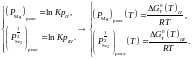 Тогда получим систему уравнений (21), в которой переменными являются парциальные давления паров двух элементов соединения, используя полученное значение соотношения давлений при температуре синтеза и значение логарифма произведения реальных давлений паров из второго пункта курсовой работы: