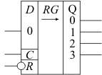 Ввод информации в данный регистр – последовательный через внешний вход D0. Регистр имеет вход тактирующих импульсов C и вход асинхронной установки всех разрядов в состояние логического "0" R. С выходов Q0…Q3 снимается параллельный код, сдвиг вправо – от младшего разряда Q0 к старшему разряду Q3.