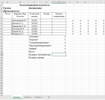 - Переименуем ведомости как «Экзамен_1», «Экзамен_2» и «Экзамен_3»