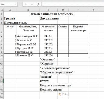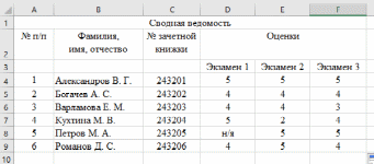 - Создадим сводную таблицу для учета всех сданных экзаменов студенческой группы: