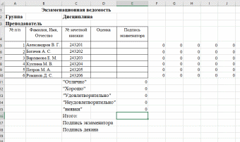 - Подсчитаем общее кол-во человек, сдавших экзамен в группе. Для этого выделим ячейку Е16, затем проведем автосуммирование по ячейкам Е11 – Е15.
