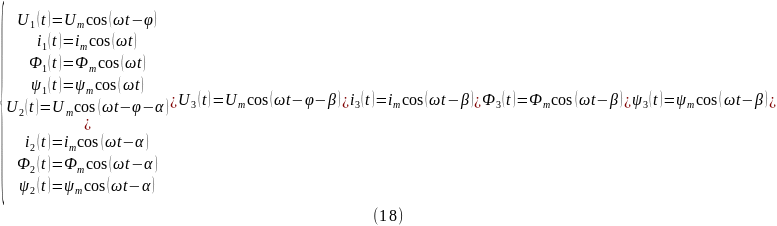 Аналогичные выражения для амплитудных значений можно получить для второй и третьей фаз питания. Тогда параметры системы питания, выраженные через напряжение питания и конструктивные параметры электромагнитного механизма, будут равны: