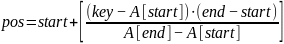 Алгоритм использует метод интерполяции для предсказания индекса.