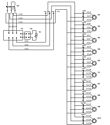 Схема керування (рис. 10.22) має автоматичний вимикач QF1, призначений для захисту від струмів короткого замикання, та перемикач SА для перемикання режимів роботи (робота в керованому або некерованому режимі роботи).