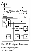 Пристрій ТСУ–2–КЛУ3 «Кліматика – 1» є тиристорним регулятором напруги з цифровою системою керування на інтегральних мікросхемах, який забезпечує плавну зміну вихідної напруги за принципом фазового регулювання залежно від величини температури повітря в приміщенні. Передбачено ручний та автоматичний режими керування. У автоматичному режимі станція забезпечує ПІ-закон регулювання температури. Пристрій складається із 2 ящиків: блока регулятора, до якого входять силовий блок та блок керування, і блока перемикача. Останній виконує функцію обхідного пристрою, а також захисту пристрою від коротких замикань (рис. 10.21).