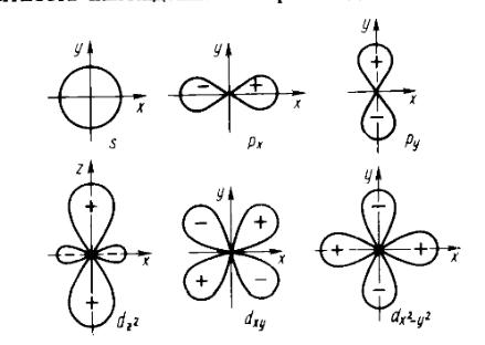 электронных облаков в пространстве вокруг ядра выделяются области, внутри которых преимущественно находится электрон (например, с вероятностью в 95%). Границы областей соответствуют определенным значениям угловой части волновой функции или ее квадрата. Поскольку характер симметрии электронных облаков при этом сохраняется, такое различие в больщинстве случаев несущественно. На отдельных частях изображений орбиталей часто указываются отвечающие им знаки волновой функции.
