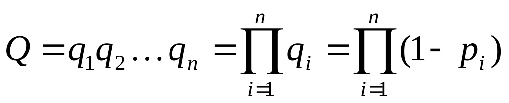 Поскольку qi <1, произведение в правой части (3.7) всегда меньше любого из сомножителей, то вероятность отказа системы не может быть выше вероятности самого надежного ее элемента (“лучше лучшего”) и даже из сравнительно ненадежных элементов возможно построение вполне надежной системы.