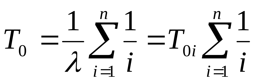 Таким образом, средняя наработка системы с параллельным соединением больше средней наработки ее элементов (например, при n = 2 Т0 = 1.5Toi, при n = З T0 = 1.83T0i).