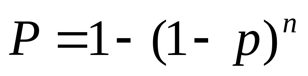 Например, при р = 0.95 и n = 4 получим Р = 0.872, при n = 8 получаем Р =0.692.