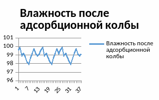 7. Опытные данные свести в таблицу. Записать высоту слоя адсорбента L, диаметр колбы D и расход воздуха по расходомеру переводя л/мин в м³/с, построить графики зависимость влажности воздуха от времени фо-тифт