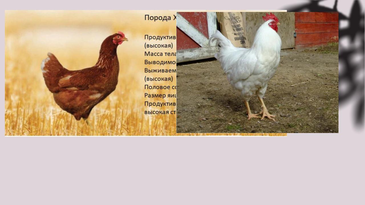 •Нежная плотная присуща курам яйценоского типа. Они имеют небольшой вес, способны к быстрому росту, обладают ранней половой скороспелостью. Птица этого типа подвижная, сильно и быстро реагирует на изменения, происходящие во внешней среде.