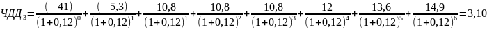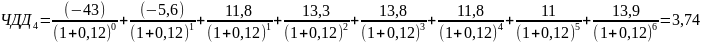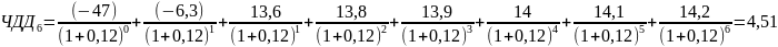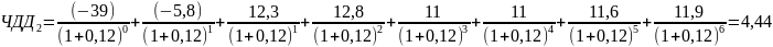По данным таблицы 4 производим расчёт ЧДД по формуле (1):
