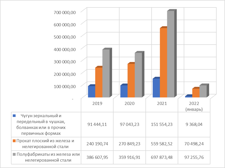 Рост экспорта чугуна вызван развитием новых рынков сбыта товаров и материалов, вспышкой COVID-19 с последующим увеличением потребления сырья, либо от снижения зависимости от углеродного следа в металлах для других стран;