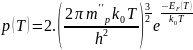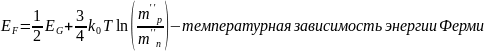 Концентрации электронов n(T) и дырок p(T) при температуре T в собственном невырожденном полупроводнике определяются выражениями: