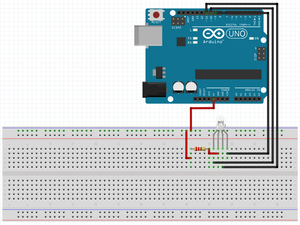 //Функция для задания 5 получающая на вход вывод светодиода (sd) и задержку (del) для получения белого цвета с подключением общий анод