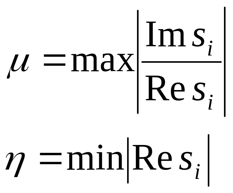 В число основных оценок входит степень устойчивости (быстродействия) η и колебательность μ (рис. 2).