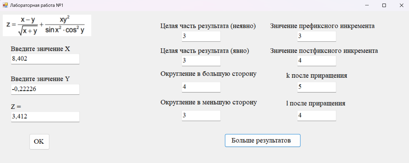 Выполнить расчет арифметического выражения (1) на языке Visual C++. Исходные данные для расчета x = 8,402, y = -0,22226.
